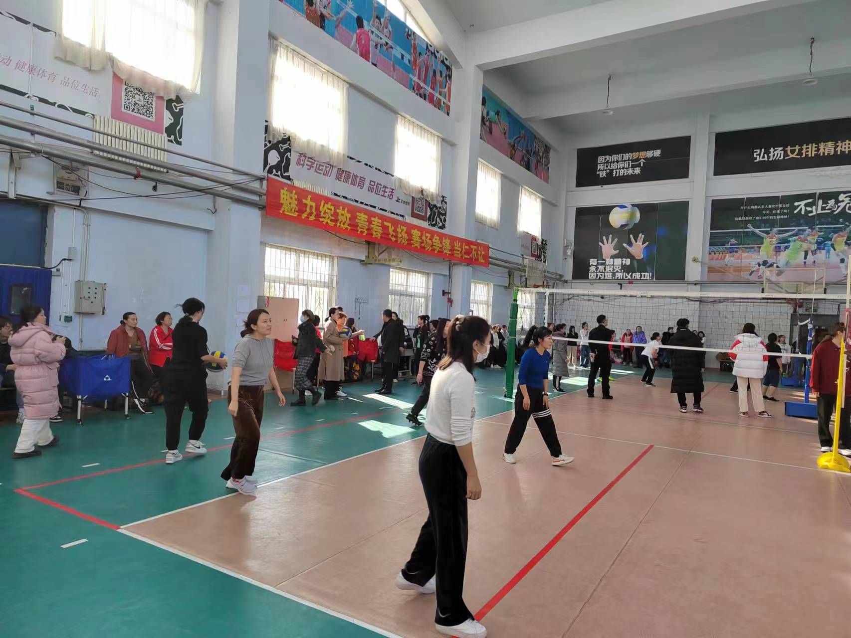 赛场上,运动员们充满活力,积极迎战,在比赛中使出看家本领,发球、起跳、拦网、扣球,每一次精彩配合和得分都赢得了观众的热烈欢呼。赛场之外,前来观赛的师生们自发组成啦啦队,此起彼伏的加油声坚定有力,整个比赛现场气氛热烈,充满了激情和活力。