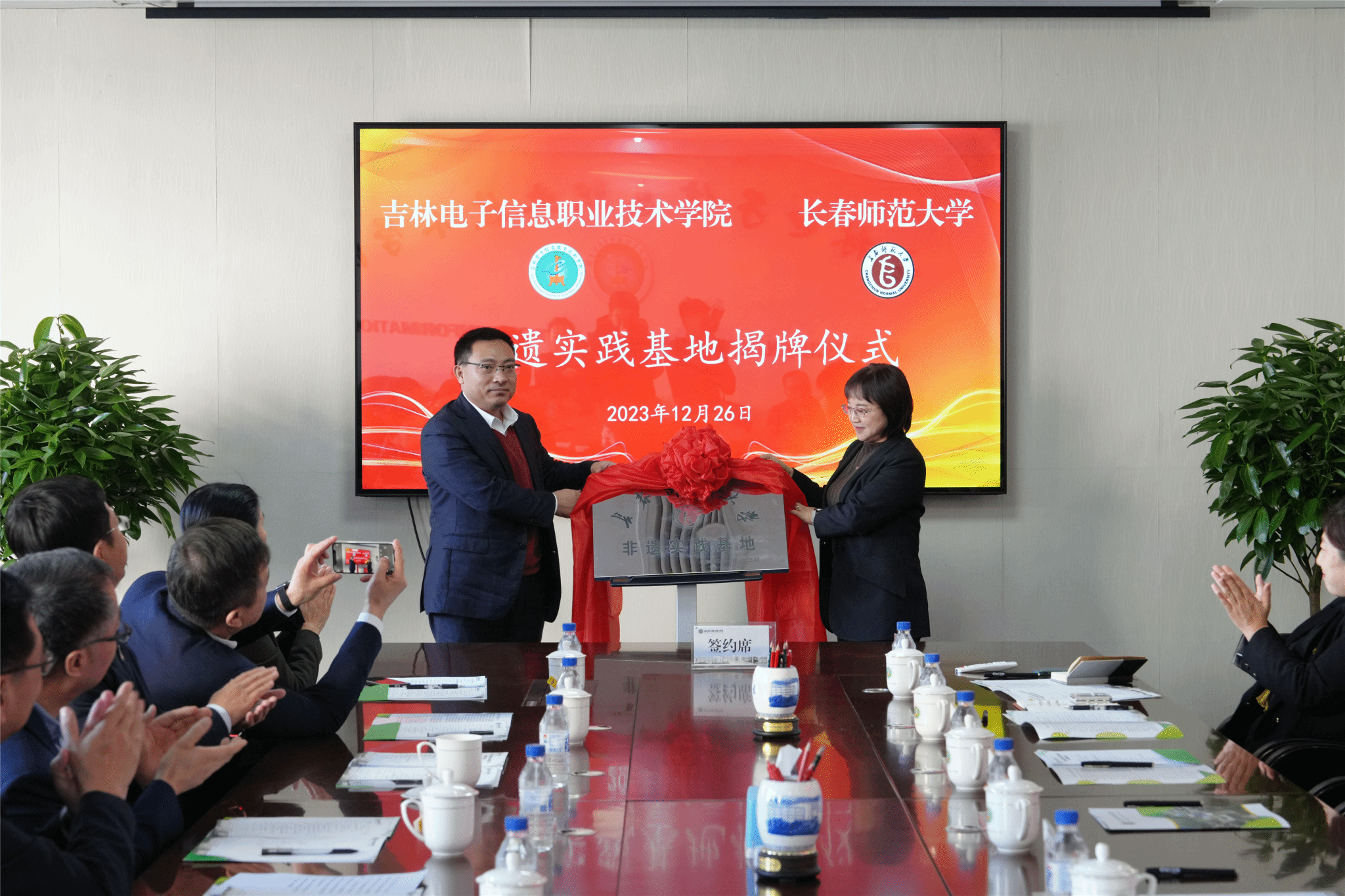 12月26日上午,我校与吉林电子信息职业技术学院战略合作签约仪式在吉林电子信息职业技术学院举行。我校党委书记刘多,党委副书记、校长王延明,副校长胡德超、刘鹏飞、陈爱梅,吉林电子信息职业技术学院党委书记何晓杰,党委副书记、校长杨勇,党委副书记石洪发,纪委书记高楠,副校长于钧、刘占文、张晓娟出席签约仪式。