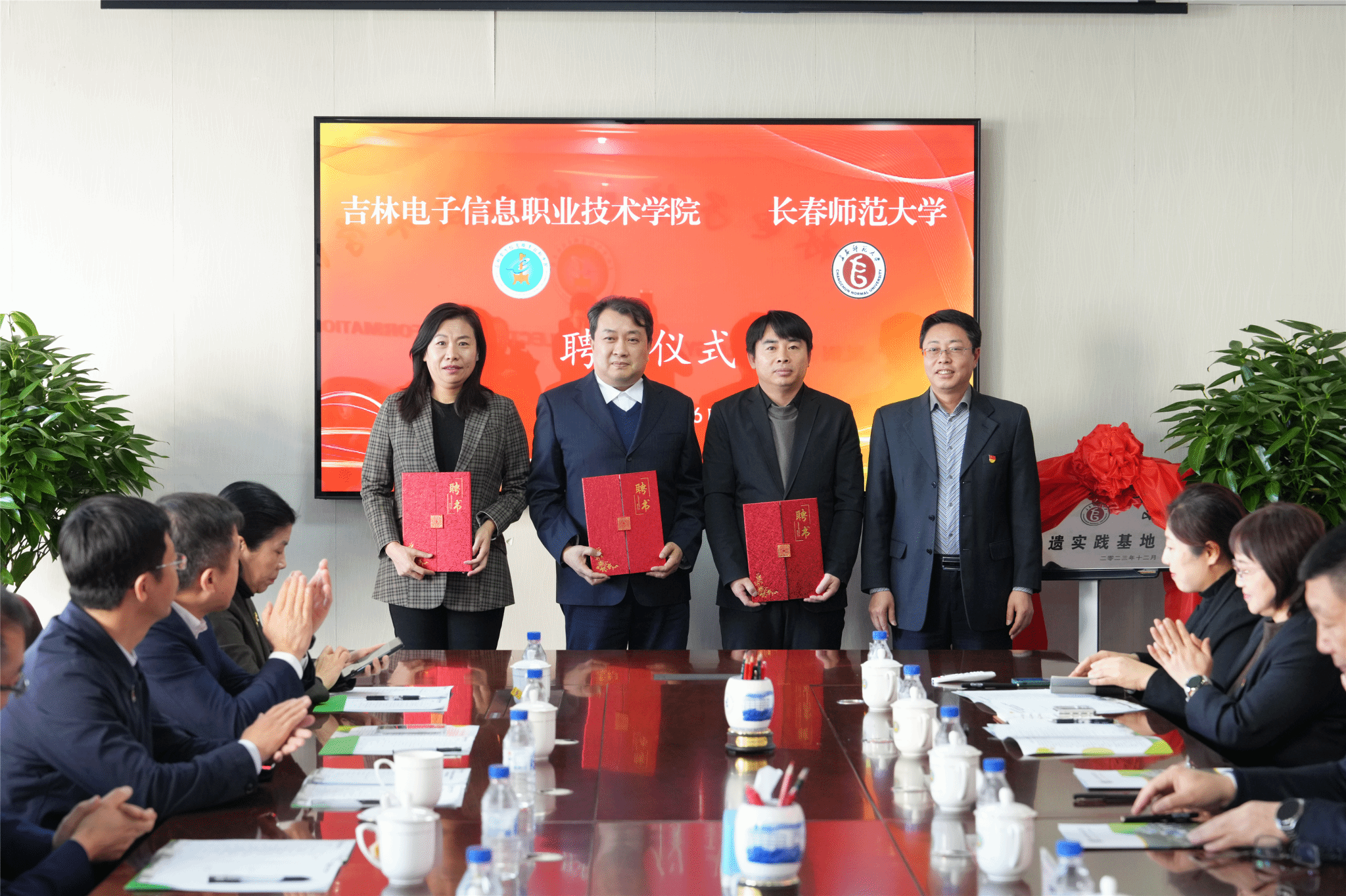 刘占文代表吉林电子信息职业技术学院为杨影、孙立巍、赵东三位教授颁发了客座教授聘书。