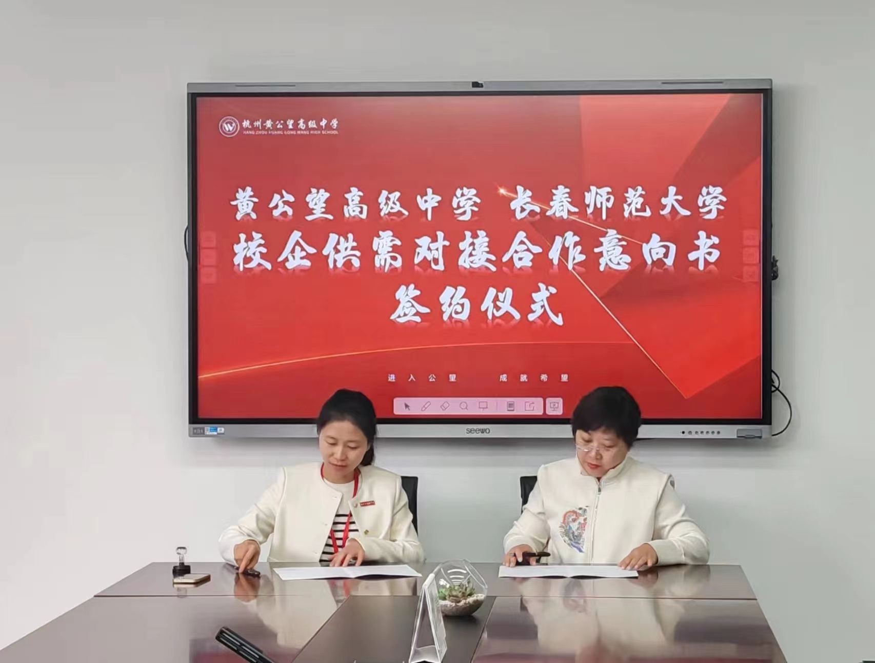 会上,我校积极开展校企合作洽谈,主动向企业单位介绍学校的人才培养、专业设置、毕业生就业等情况,定向投递简历400余份,分别与昆山昆城外国语学校、安吉县上墅私立高级中学等20余家用人单位现场签订校企意向合作协议书。