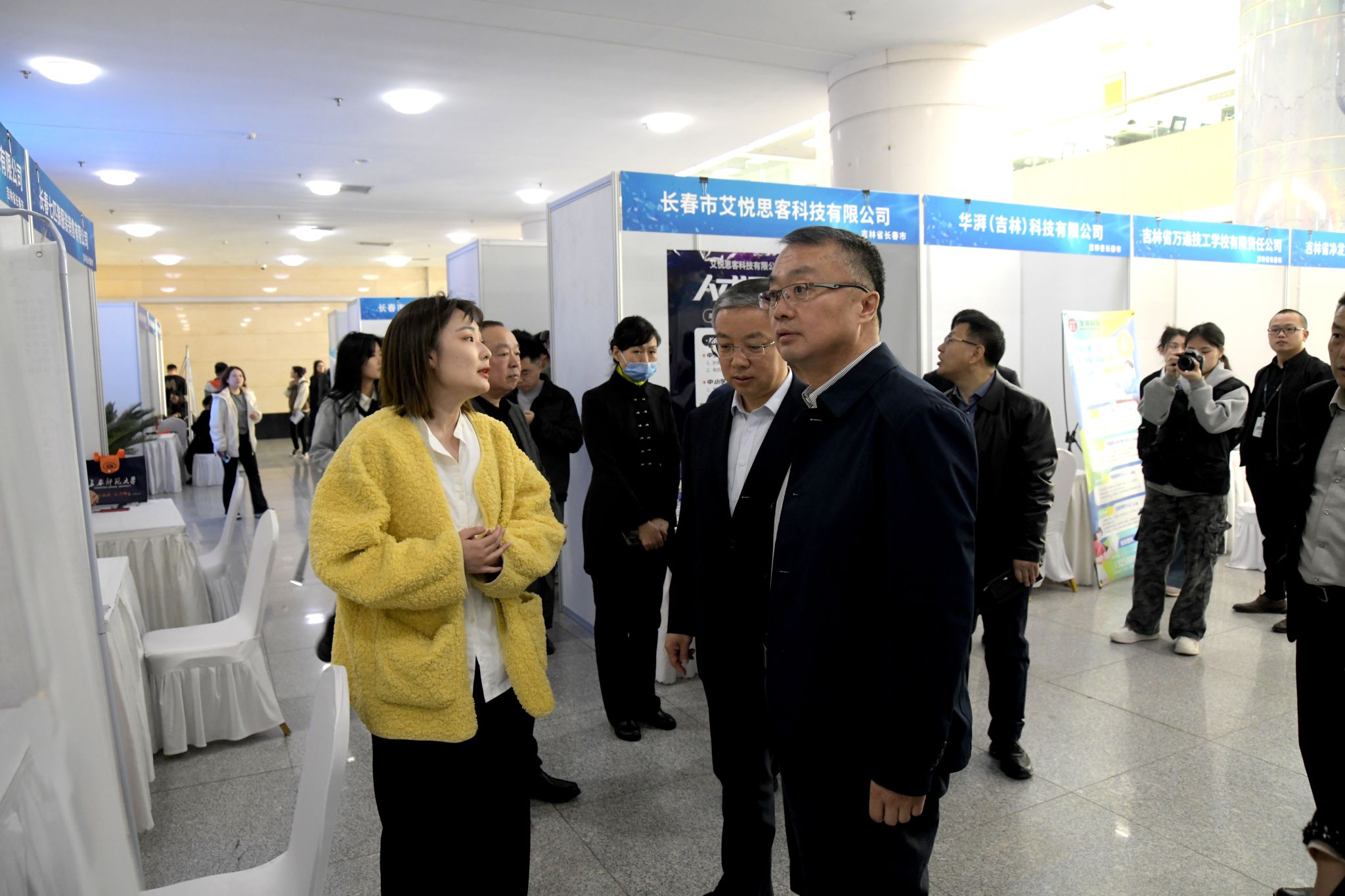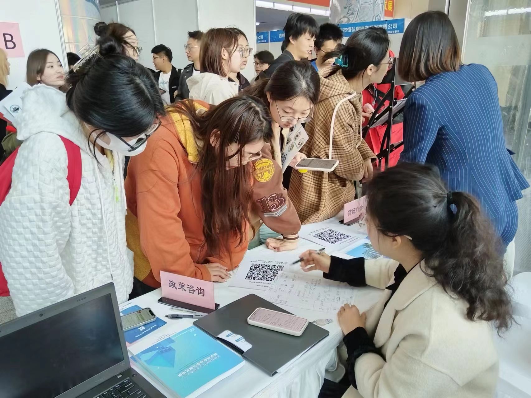 招聘会现场摩肩接踵,气氛热烈,秩序井然。吉林省世纪赢海科技有限公司、长春市朝阳区三智人才培训学校、通化海恩达高科技股份有限公司等用人单位的展位前人头攒动……参会同学在招聘单位前查看信息,咨询情况,积极与招聘单位负责人交流,负责人向毕业生们详细讲解企业岗位需求、薪酬福利等相关内容。