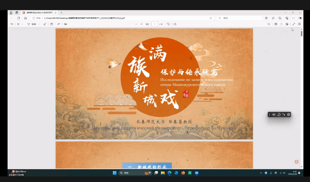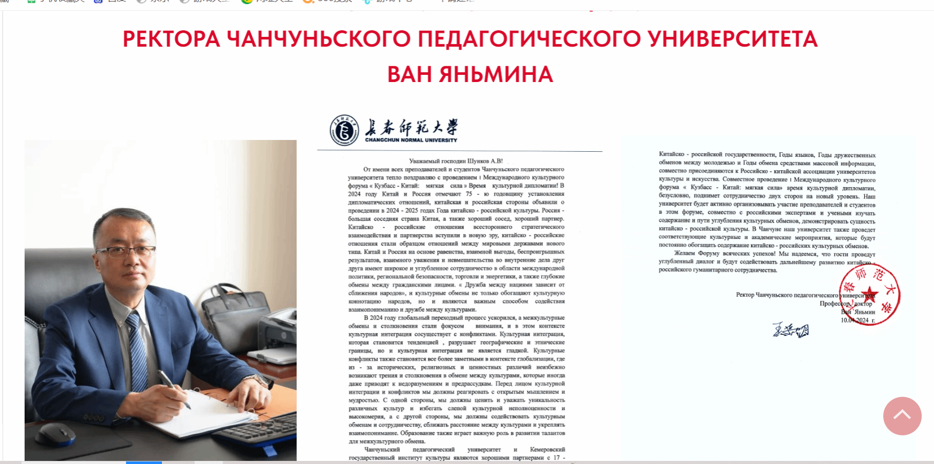520-24日,中俄文化年框架下“第一届《库兹巴斯——中国:文化外交软实力时代》国际文化论坛”在克麦罗沃国立文化学院举行,我校作为承办方之一,远程参与论坛活动。我校党委副书记、校长王延明发表书面致辞。