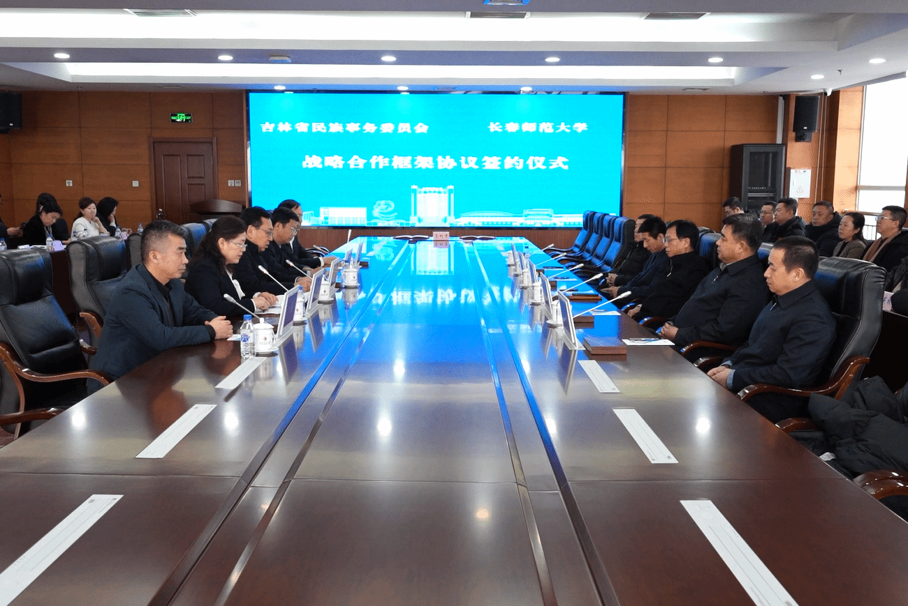 学校副校长宫炳成、省民委副主任孟庆东代表双方签约。双方将以此次战略合作为契机,集中科研优势,针对边疆安全、各民族交往交流交融等内容开展学术研究,为吉林省民族宗教研究事业、铸牢中华民族共同体意识和推进新时代党的民族工作高质量发展提供智力支持。