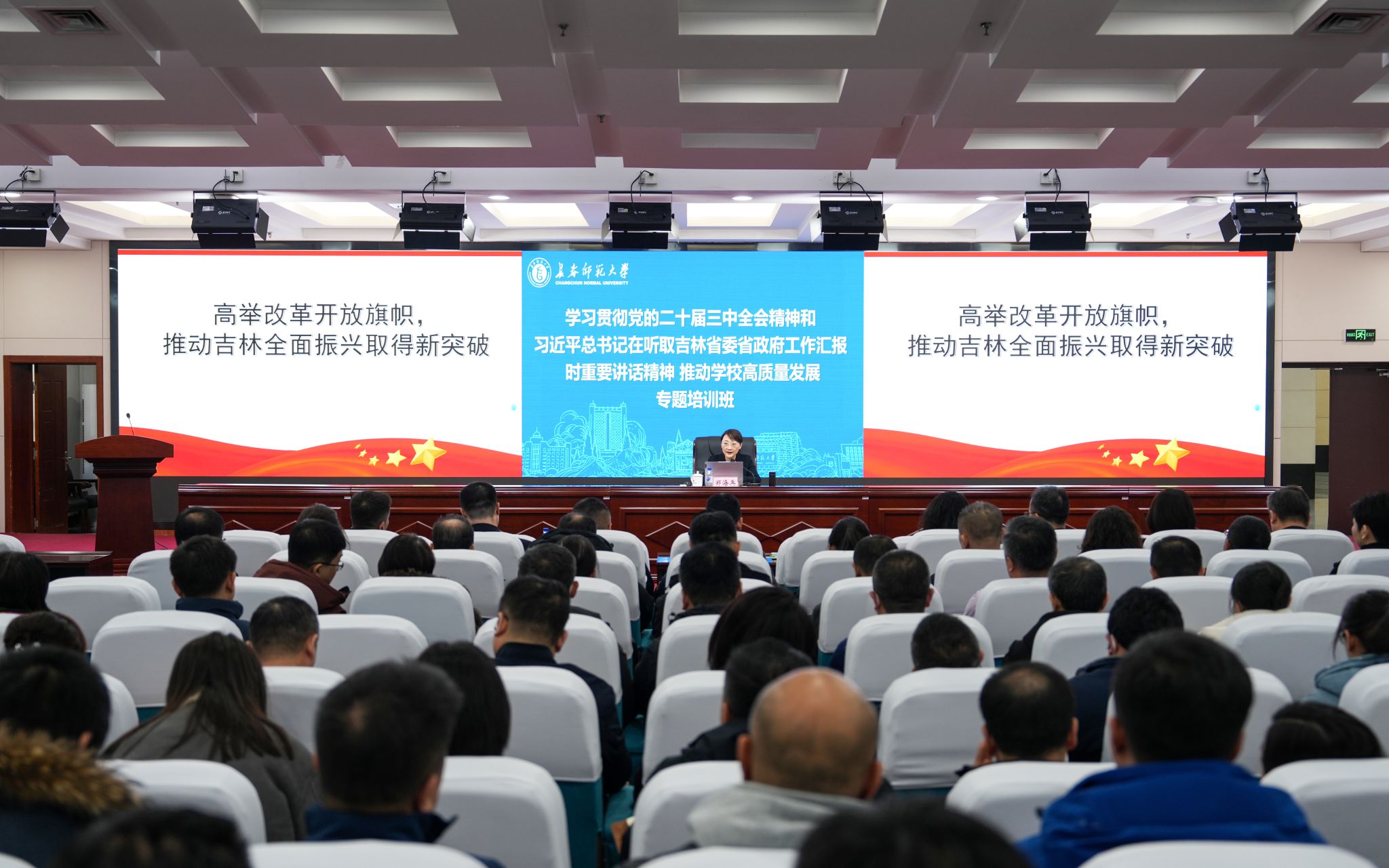 为深入学习贯彻党的二十届三中全会精神,认真学习贯彻落 实习近平总书记在听取吉林省委和省政府工作汇报时的重要讲话精神,不断引导干部树立正确的权力观、政绩观、事业观,全面促进学校干部深化改革、凝聚共识、担当作为,持续推进学校事业高质量发展。2月26日至3月4日,学校举办“学习贯彻党的二十届三中全会精神和习近平总书记在听取吉林省委省政府工作汇报时重要讲话精神 推动学校高质量发展专题培训班”。