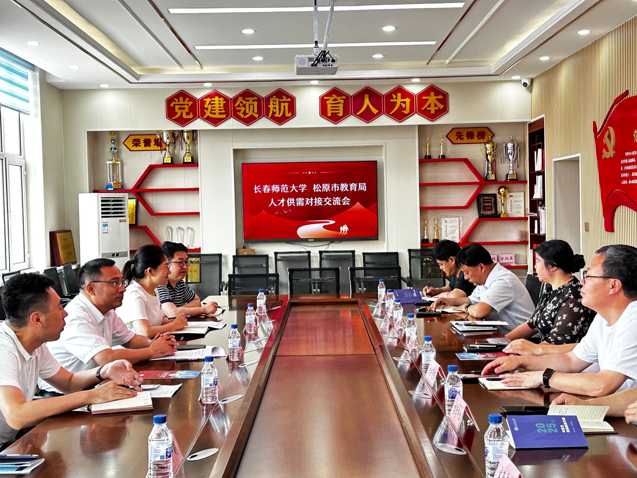 走访期间,胡德超一行与松原市人力资源和社会保障局、松原市教育局分别召开座谈会,围绕学科建设与人才培养体系优化、协同创新机制构建及毕业生就业服务等议题,进行了全面深入的交流研讨。会上,胡德超通报了学校在实施博士学位授予单位增列、学科建设、人才培养、新校区建设等方面的最新动态,双方共同探索校地合作新路径,凝聚发展合力,为进一步深化合作奠定了坚实基础。